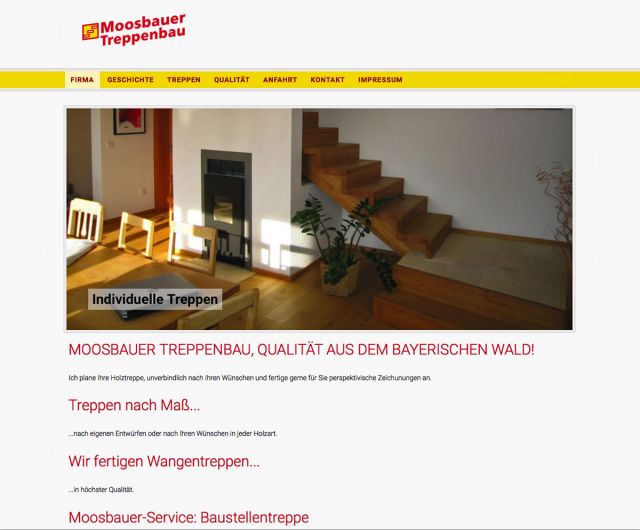 Arbeit: Homepage für Treppenbau Moosbauer: Konzeption, Web Development, Programmierung, Beratung,